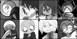 ◆ First Row: Sigma Naki (MO4), Nozomu Itoshiki (Sayonara Zetsubou Sensei), Samekichi (Wadanohara and the Great Blue Sea), Gou Kirimi (MO4)